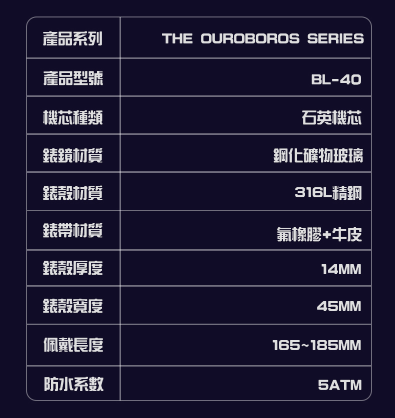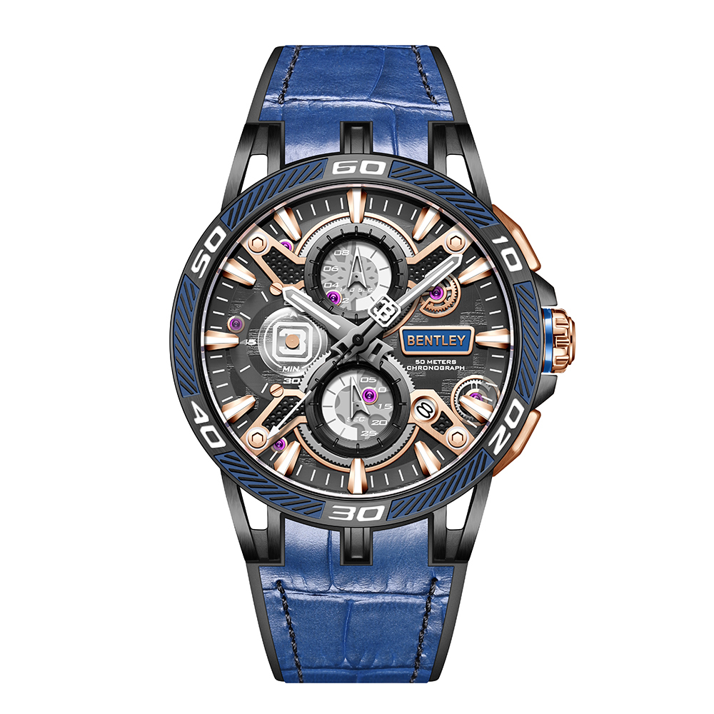 【BENTLEY 賓利】 THE OUROBOROS 魅影系列 BL-40-03 真三眼 牛皮 質感潮流型男 日期 夜光 多彩矽膠 手錶