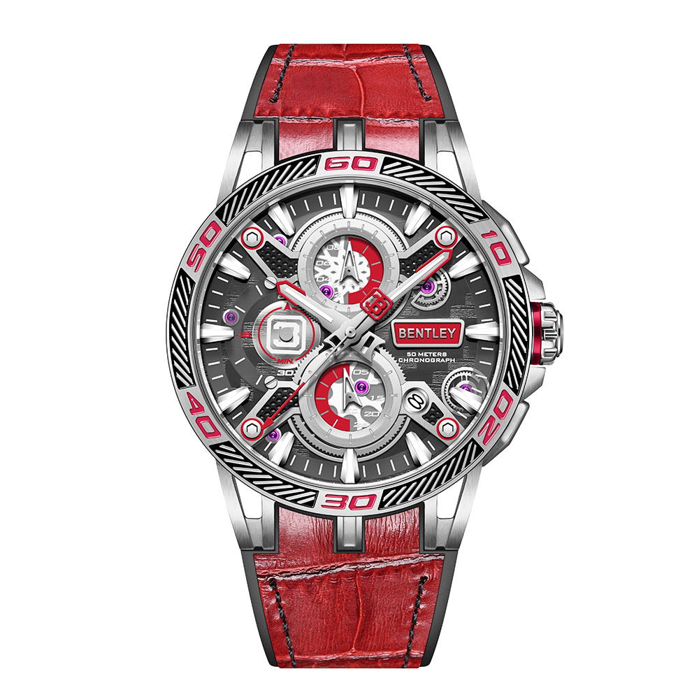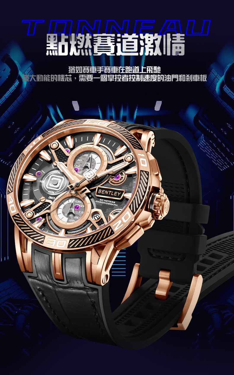 【BENTLEY 賓利】 THE OUROBOROS 魅影系列 BL-40-53 真三眼 牛皮 質感潮流型男 日期 夜光 多彩矽膠 手錶