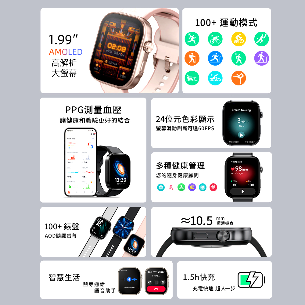 【BENTLEY 賓利】BL-GTX13 粉色 時尚中性風格 多語言支援 運動健康紀錄 藍芽助手 硅膠 電子錶 手錶