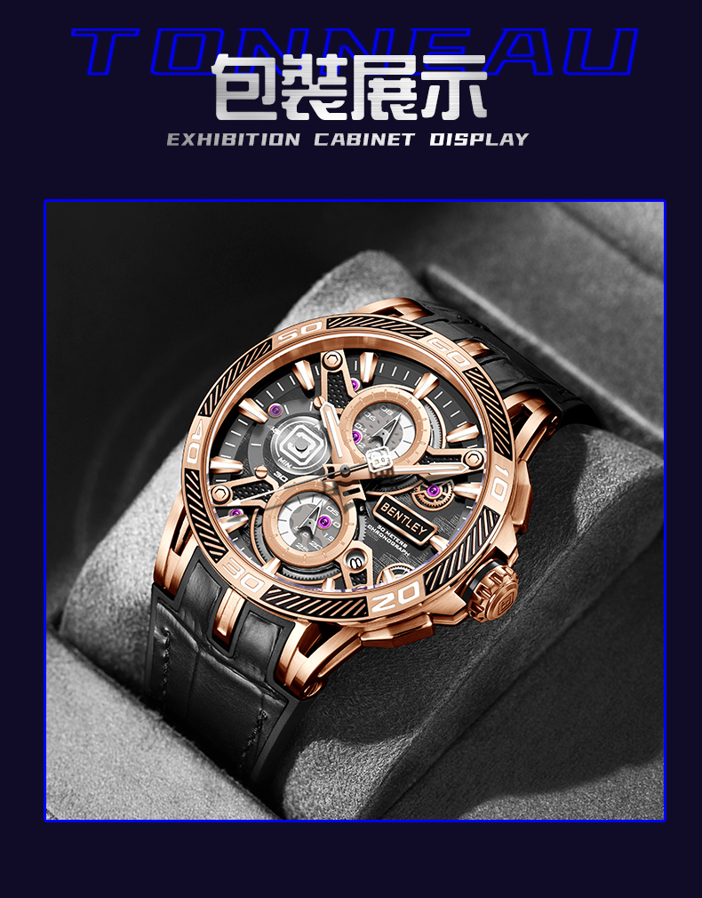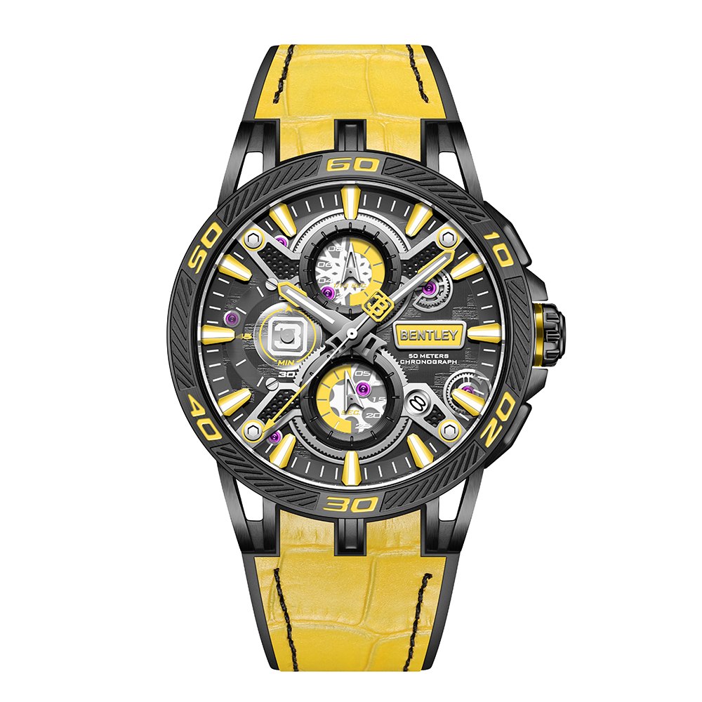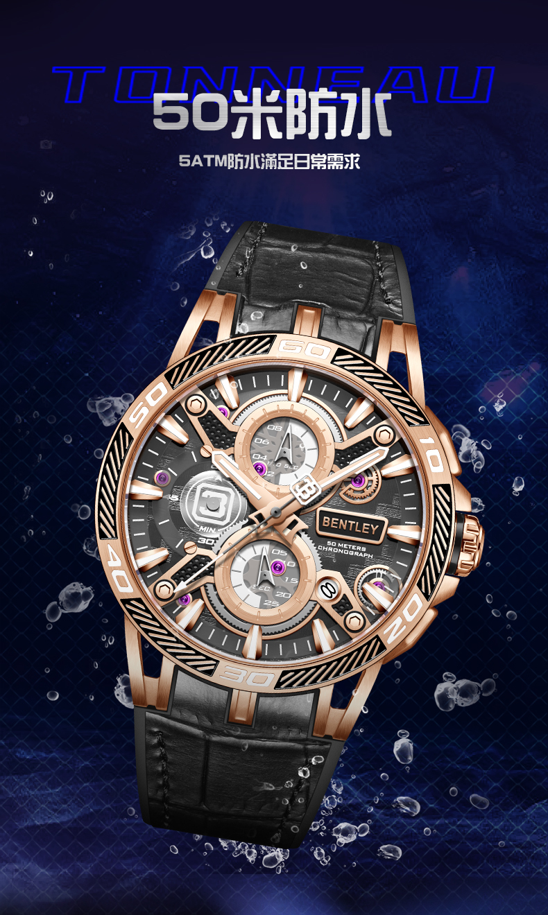 【BENTLEY 賓利】THE OUROBOROS 魅影系列 BL-40-04 真三眼 牛皮 質感潮流型男 日期 夜光 多彩矽膠 手錶